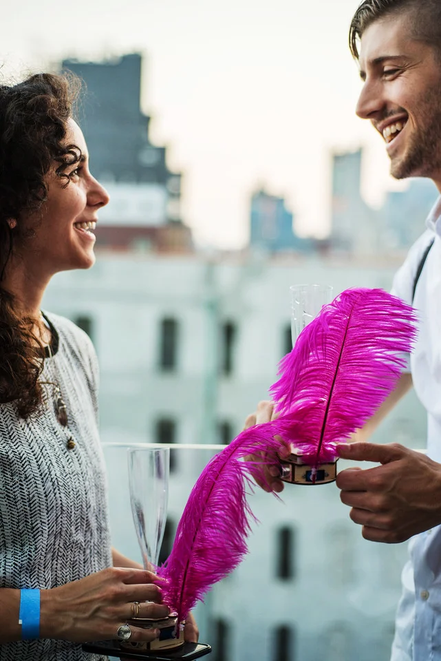 This is a series of kinetic products designed to facilitate social interaction. A feathered device is connected to each goblet, serving as an avatar for a person to gently touch the world. When users are holding the goblets and cheering during dinners or parties, the feathers, controlled by the sensors, will start to “flirt” by waving to one another in a humanized manner. Therefore, the goblets become the props that visualize intimacy and help people break the ice in an implicit but playful way.